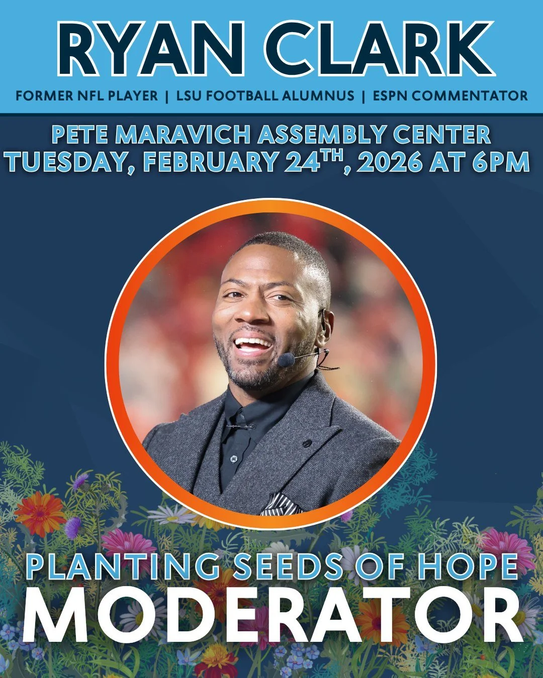 Former LSU safety, NFL Super Bowl XLIII Champion, and ESPN analyst Ryan Clark returns home to Baton Rouge, Louisiana, to moderate the 3rd Annual Planting Seeds of Hope. He played for the Tigers from 1998 to 2001, earning All-SEC honors before launching a 13-season NFL career that included a Super Bowl victory with the Pittsburgh Steelers in 2009.